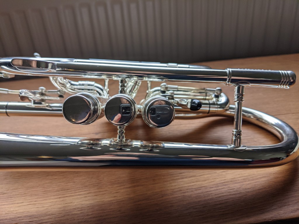 The valves have very tight tolerances. It came with a bottle of La Tromba T2 lite valve oil. Initially I cleaned the valves and applied Ultrapure standard. This is the valve oil I use on most of my instruments, but on this occasion it made the valves very sluggish so I cleaned them again and went back to the supplied La Tromba oil. I find this dries quite quickly so I am going to try the light version of Ultrapure when it runs out.