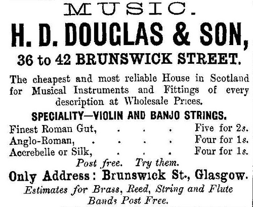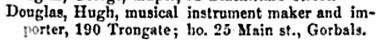 Entry for H Douglas 190 Trongate, Musical instrument maker in the 1866 Glasgow Post Office Directory: